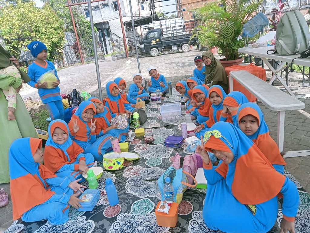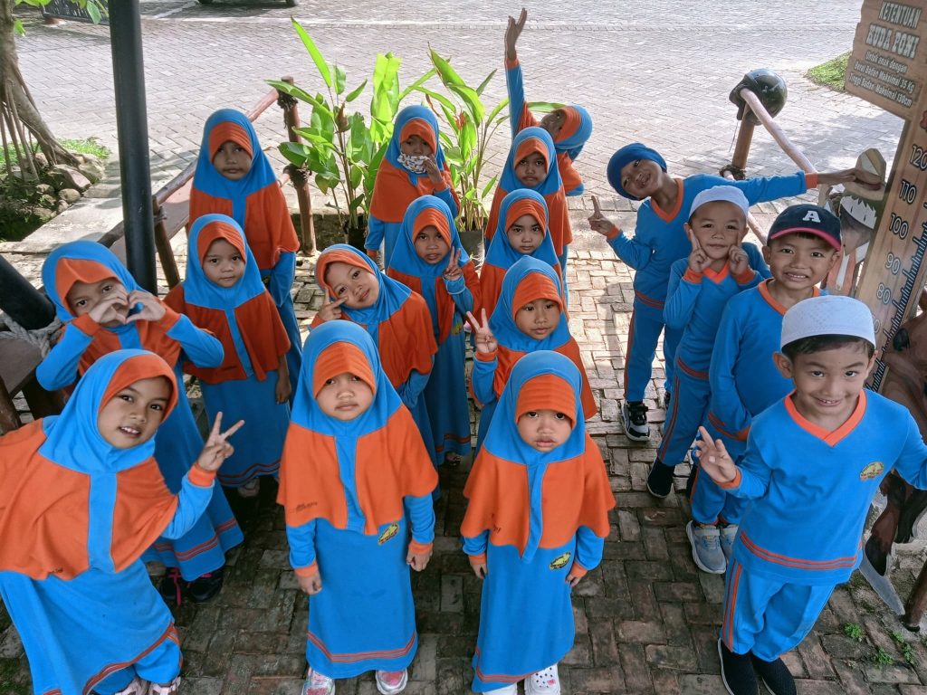 Walaupun cuaca cukup terik, tapi semangat ananda mengalahkan panasnya hari itu. Dimulai dengan sholat Dhuha berjamaah di sekolah, kemudian ananda pergi konvoi menggunakan mobil bersama dengan ustazah.